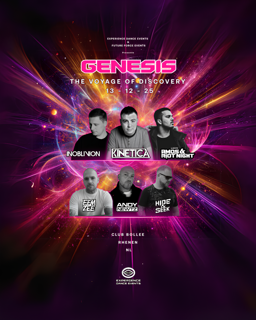 Genesis: The Voyage of Discovery hits Club Bollee, NL on 13 Dec 2025. An intimate trance event uniting ravers across Europe.